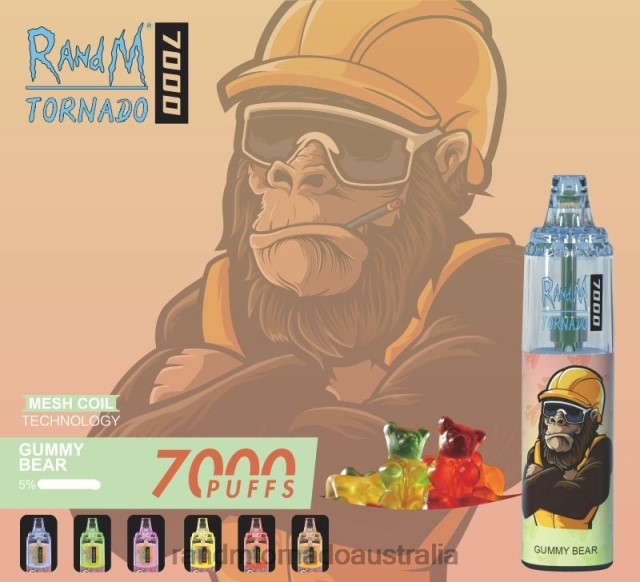 RandM Vapes Australia – RandM Tornado 7000 Airflow Control Vape Device 1PC N622X168 Gummy Bear
